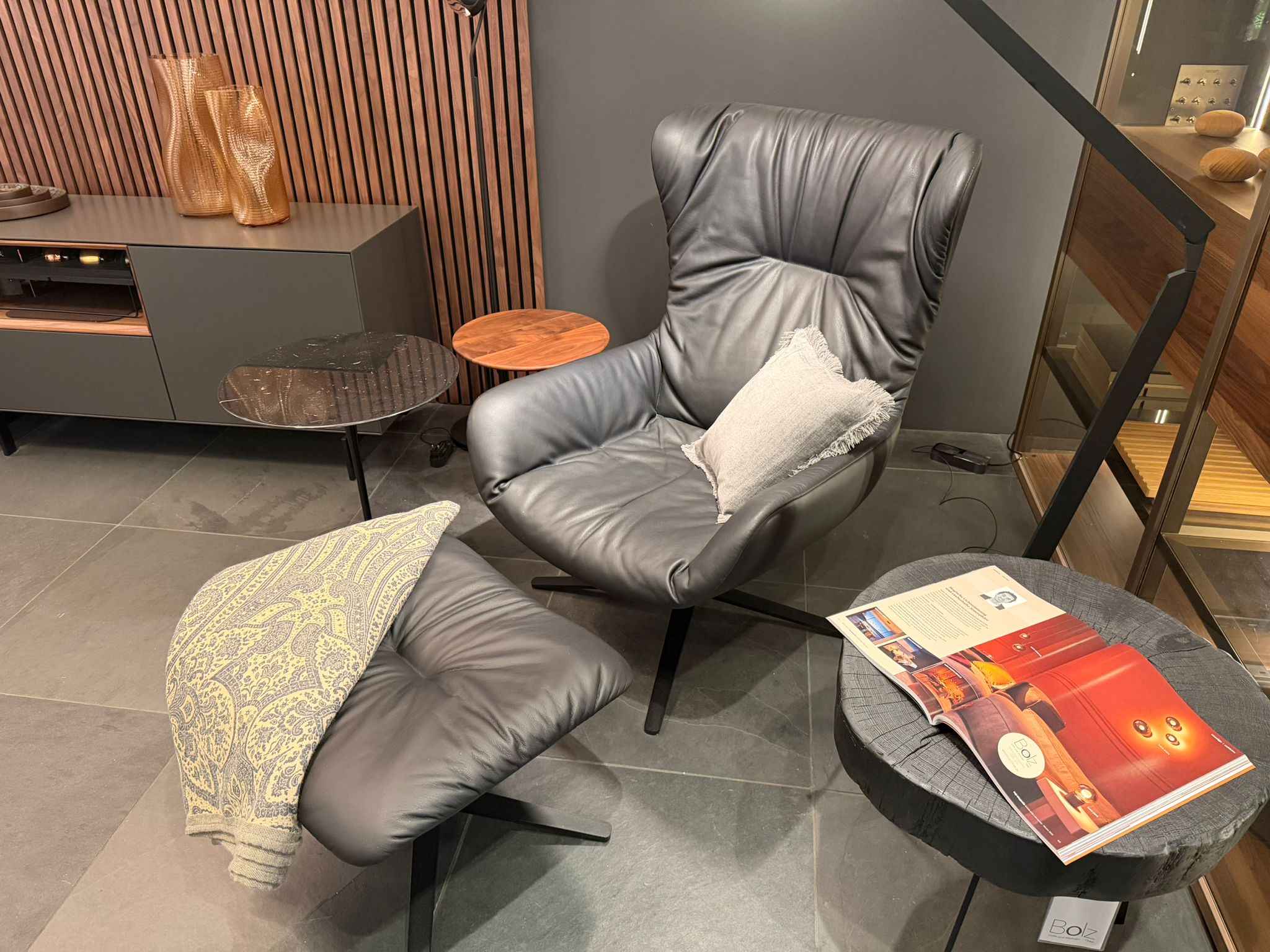 Der LEYA Wingback Chair von FREIFRAU verbindet luxuriösen Komfort mit zeitlos-modernem Design. Bezogen mit hochwertigem Leder Sahara in der Farbe Ebony strahlt der Sessel Eleganz und Exklusivität aus.