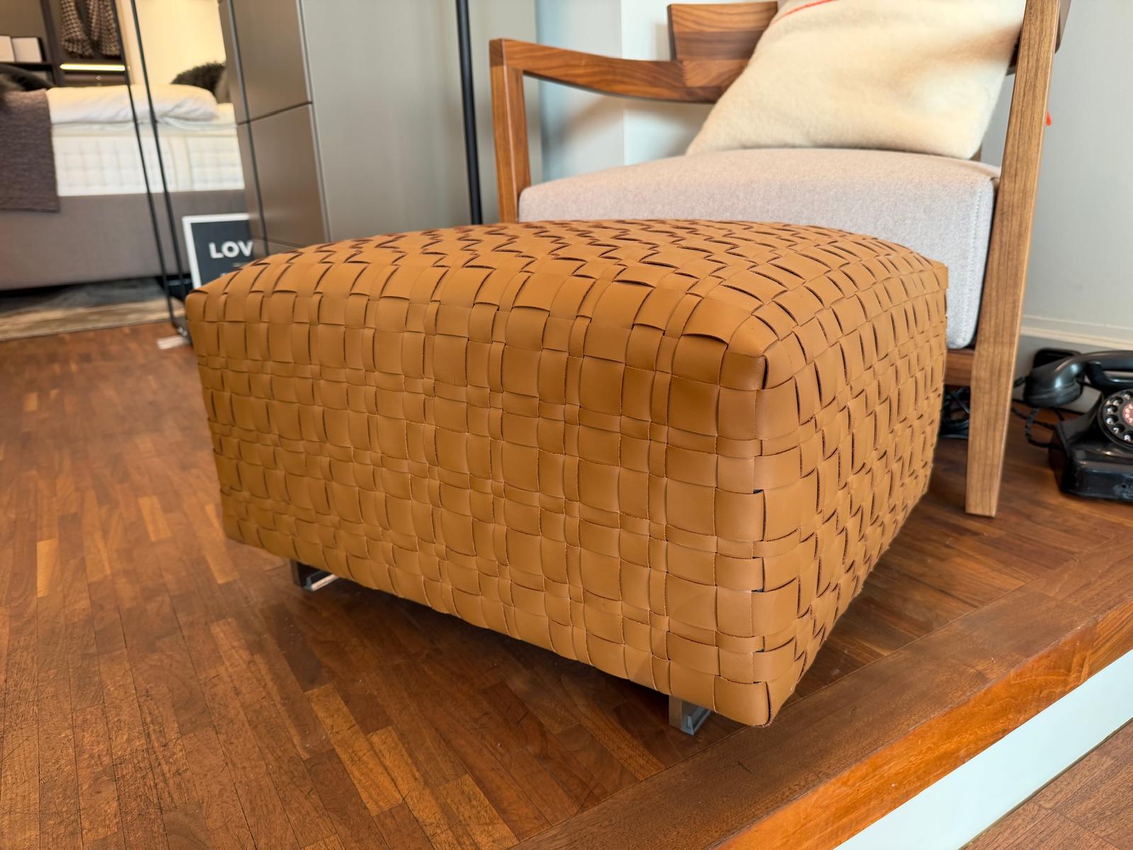 Der stilvolle Pouf Bangkok von Flexform überzeugt durch seine hochwertige Verarbeitung und das klare, zeitlose Design. Bezogen ist er mit edlem Kernleder in der Farbe Tabak, das sowohl luxuriös als auch langlebig ist.